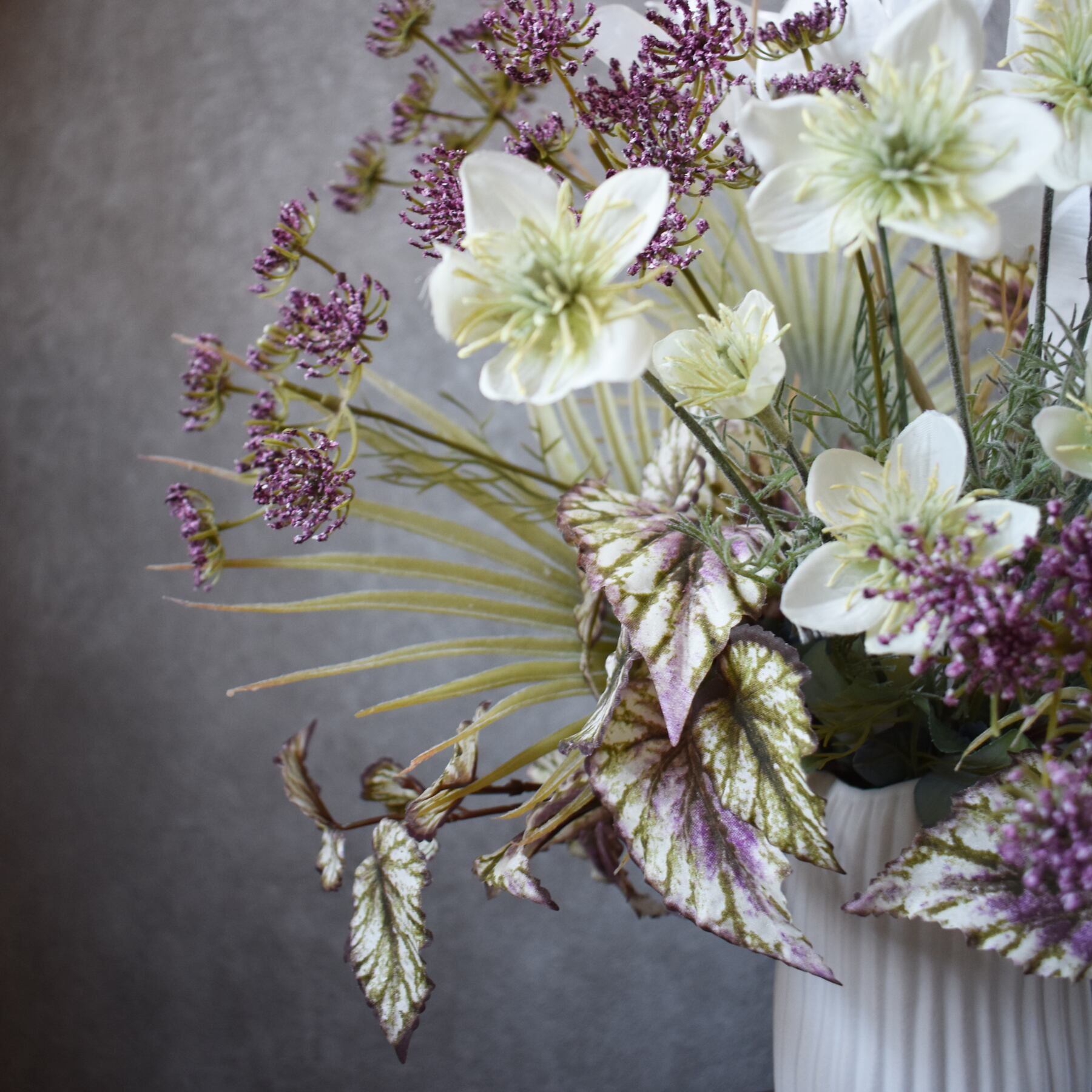 水やり不要で長期間美しさを保持してくれる、上品な白系インテリア装飾です。