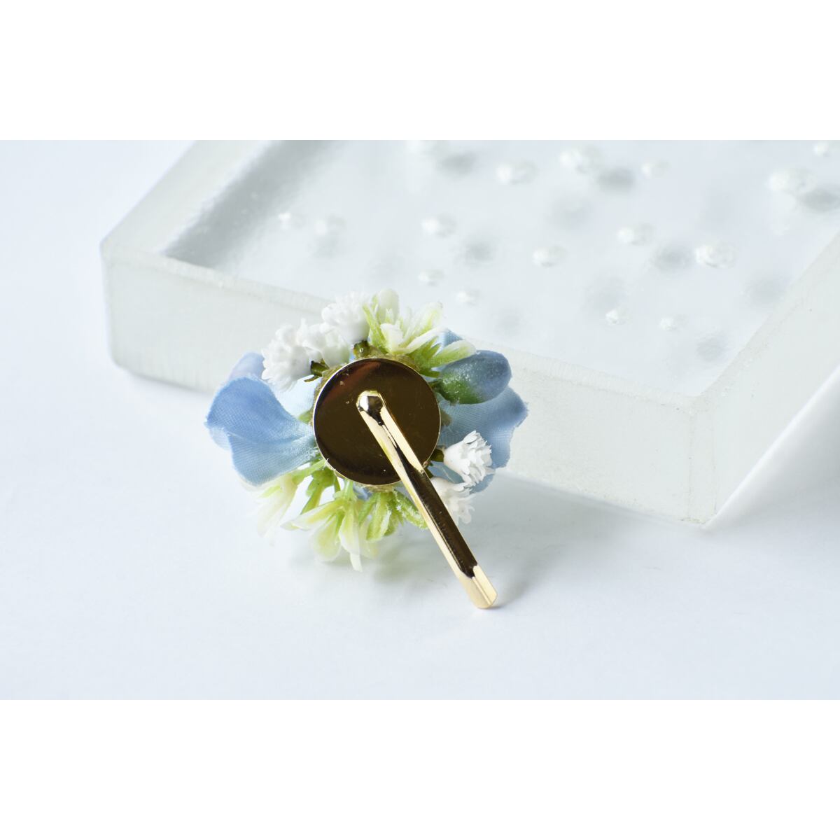 お花のポニーフック ガーデンブロッサム ブルー×カスミ草 大人の髪飾り
