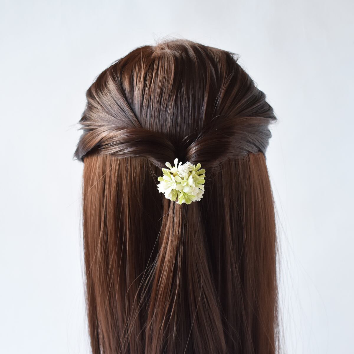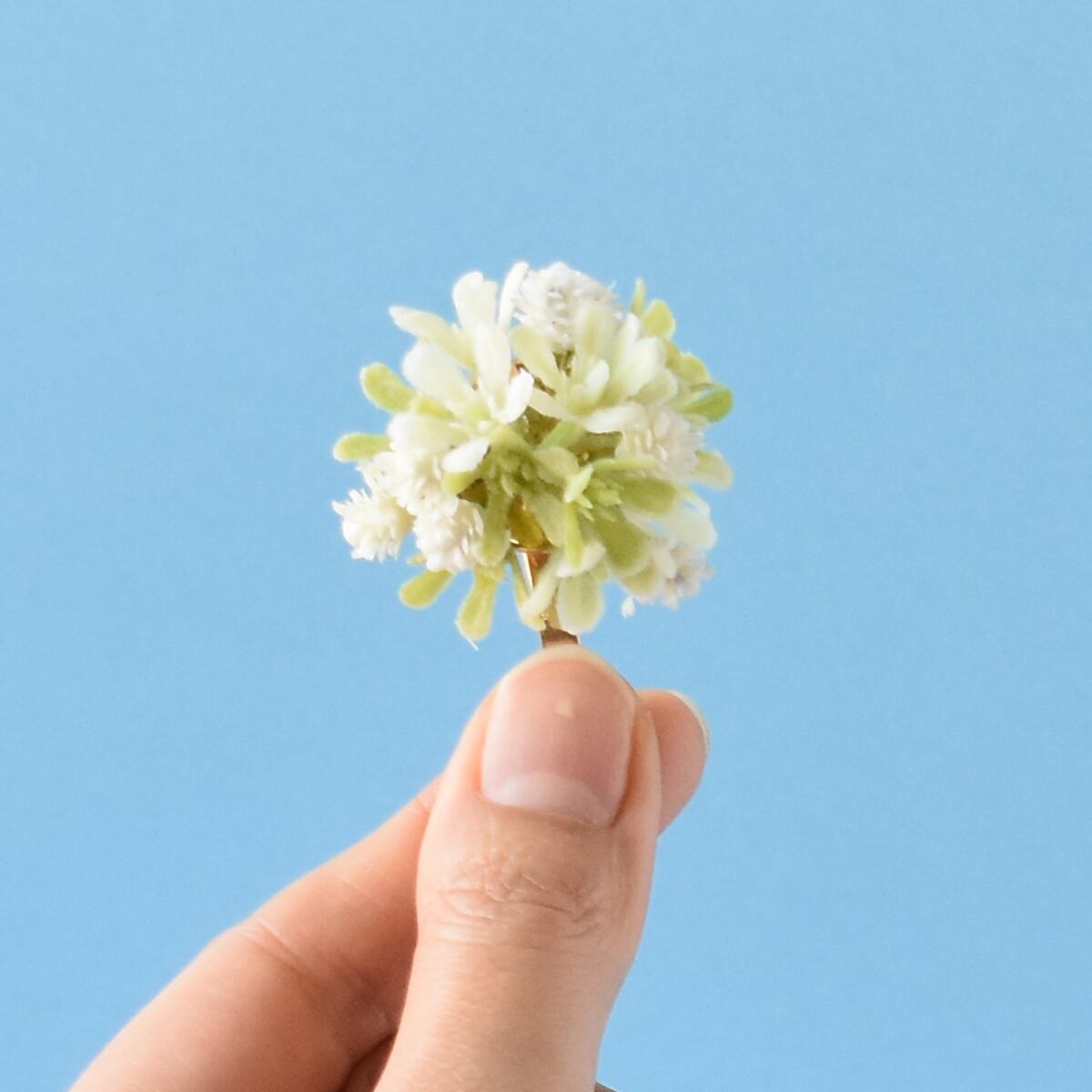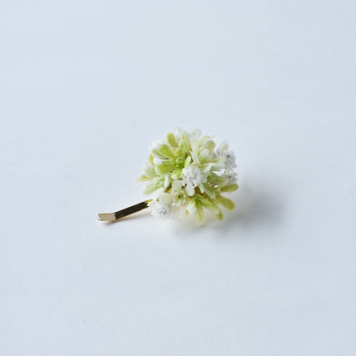 お花のポニーフック ベビーフラワー ライトグリーン×カスミ草 大人の髪飾り