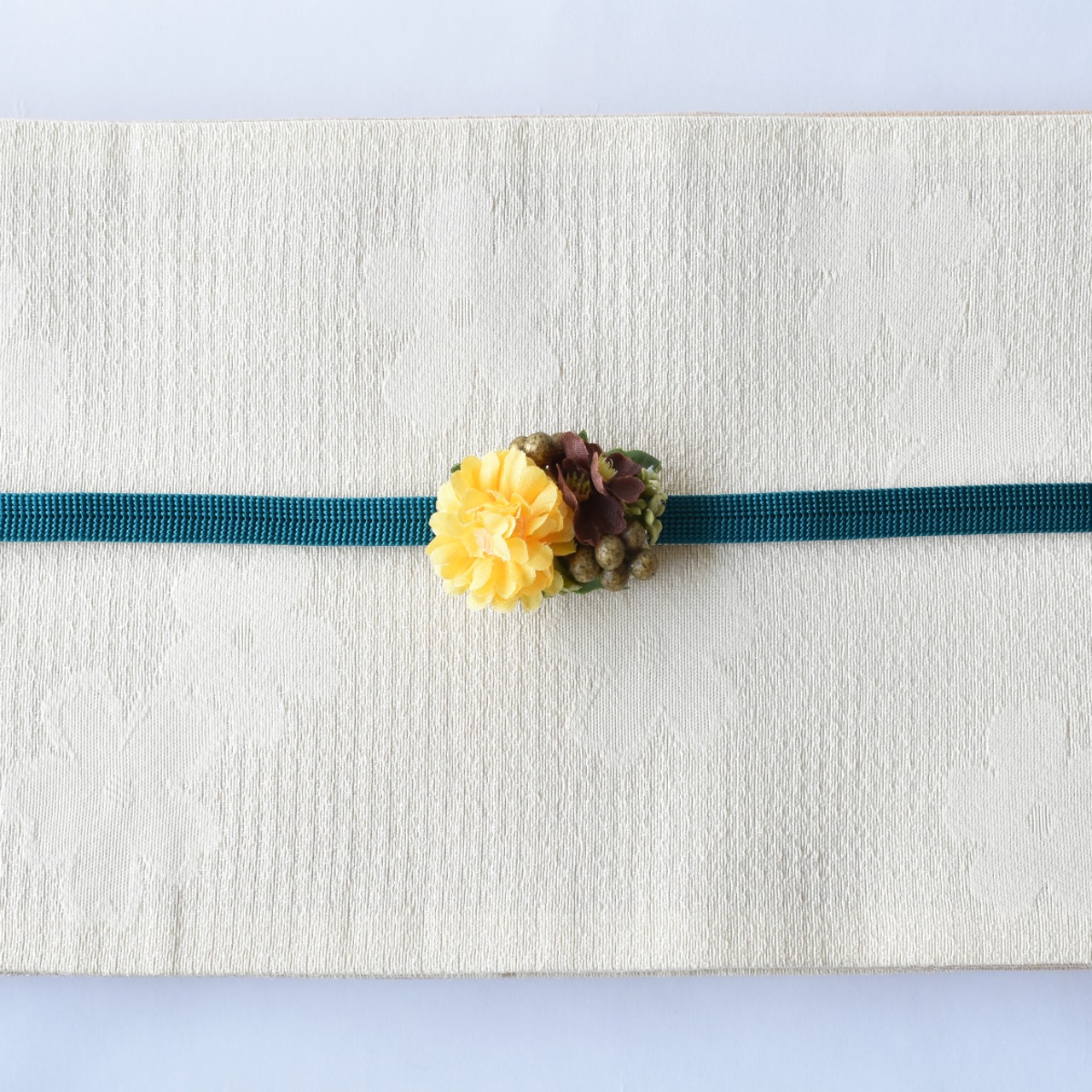 やわらかなイエローのポンポンマムの帯留め。