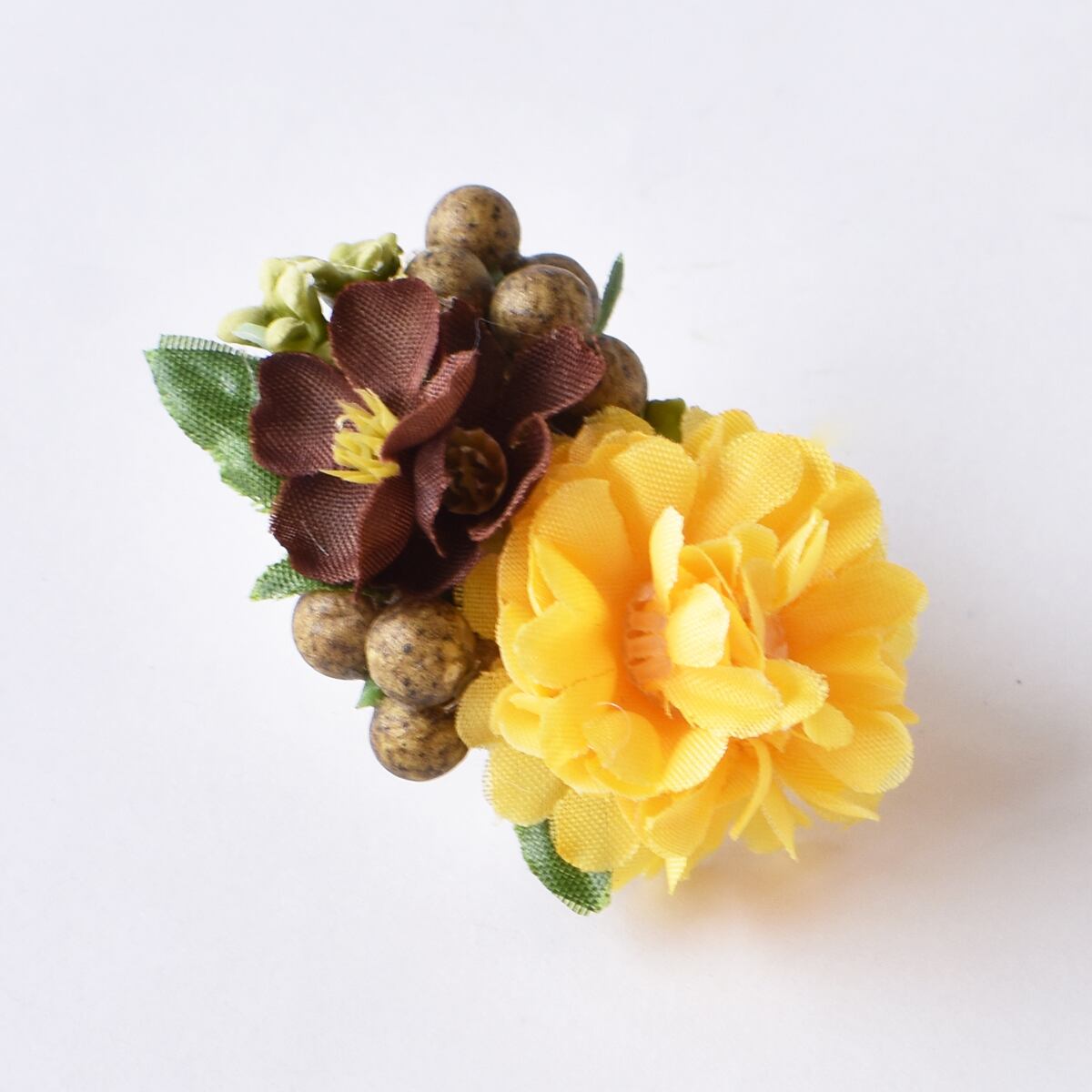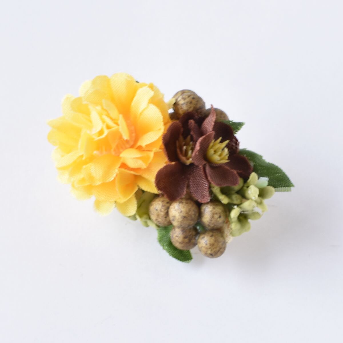 花 アクセ アクセサリー 着物 浴衣 かわいい プレゼント 実用的 黄色 イエロー 菊 ポンポンマム 勿忘草 茶 ブラウン クリスマス 母の日