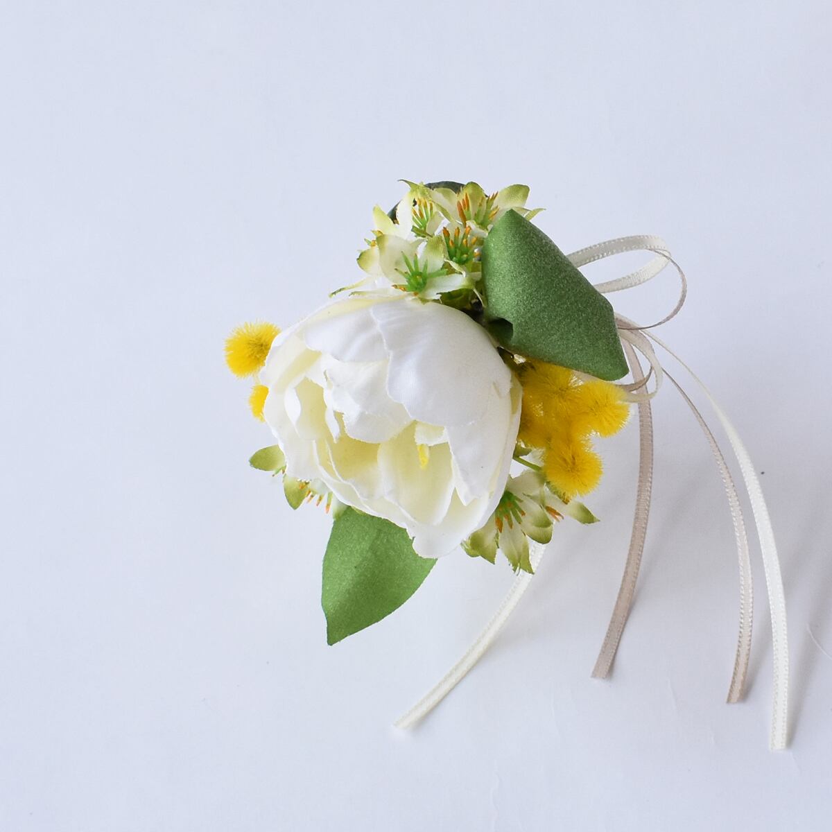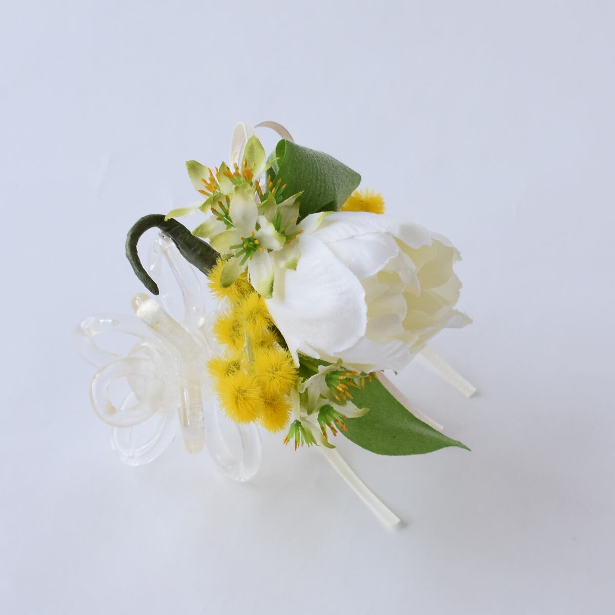 花 アクセ アクセサリー チューリップ ミモザ コサージュ ホワイト 卒業式 入学式 人気 大人 シック 白 黄色 イエロー 小ぶり プレゼント 実用的