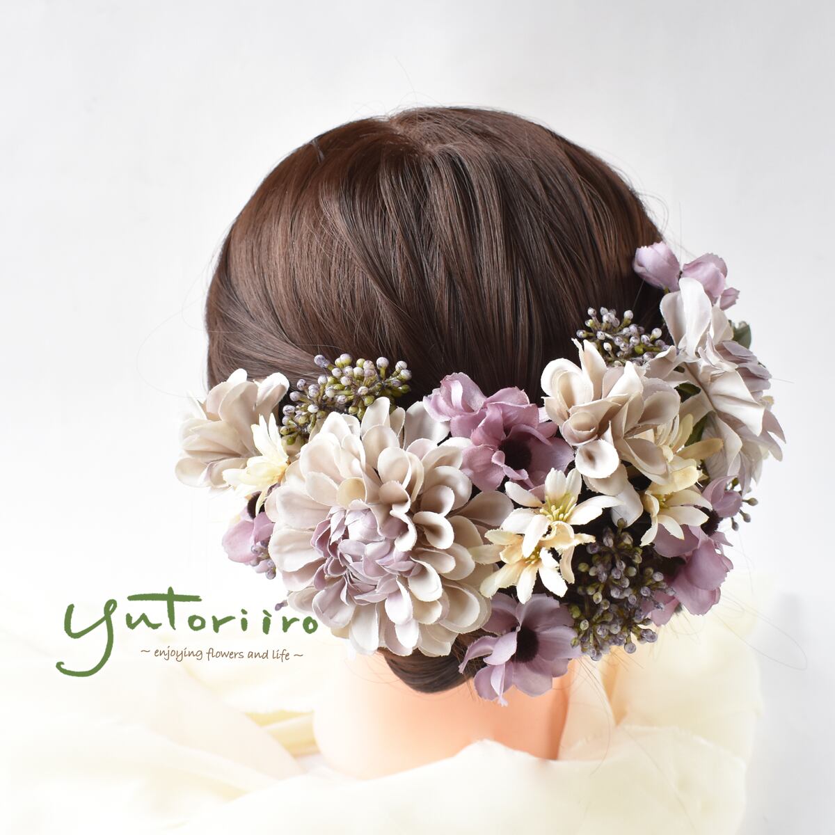 くすみパープルダリアとアネモネのヘッドドレス