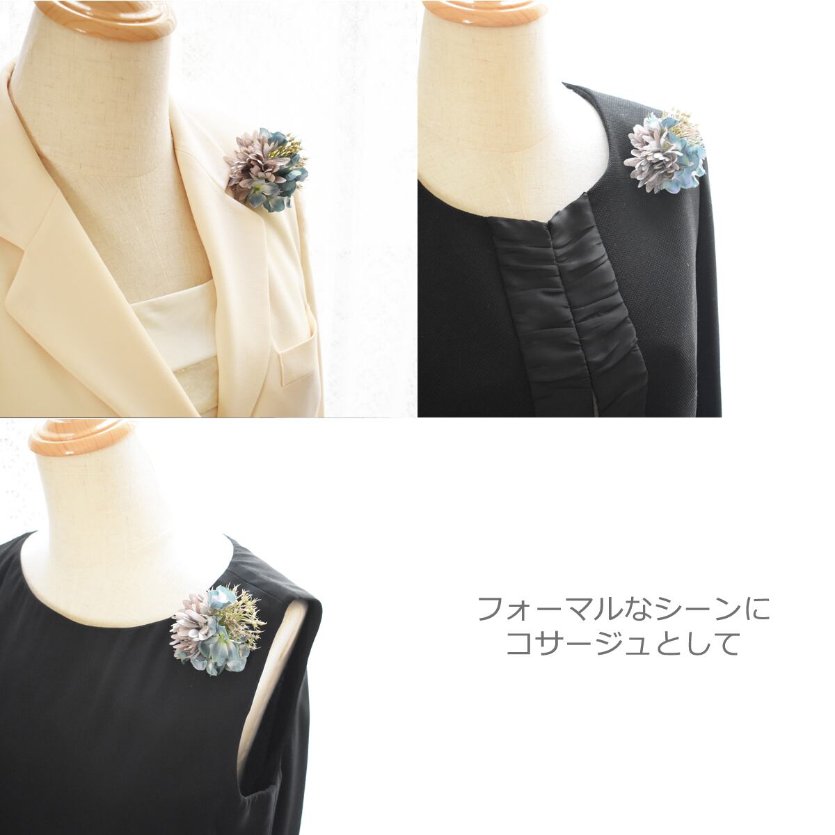 ジャケットやワンピースにつけてフォーマルなシーンに。