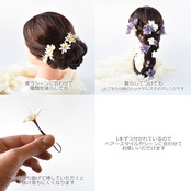 ヘッドドレスは、色々なヘアースタイルやシーンに合わせてお使い頂けるように、1本ずつに分けてお作りしていますので、左右にまとめてつけたり、散らしてつけたり、一部のお花を使って少なめにつけたりすることができます。
